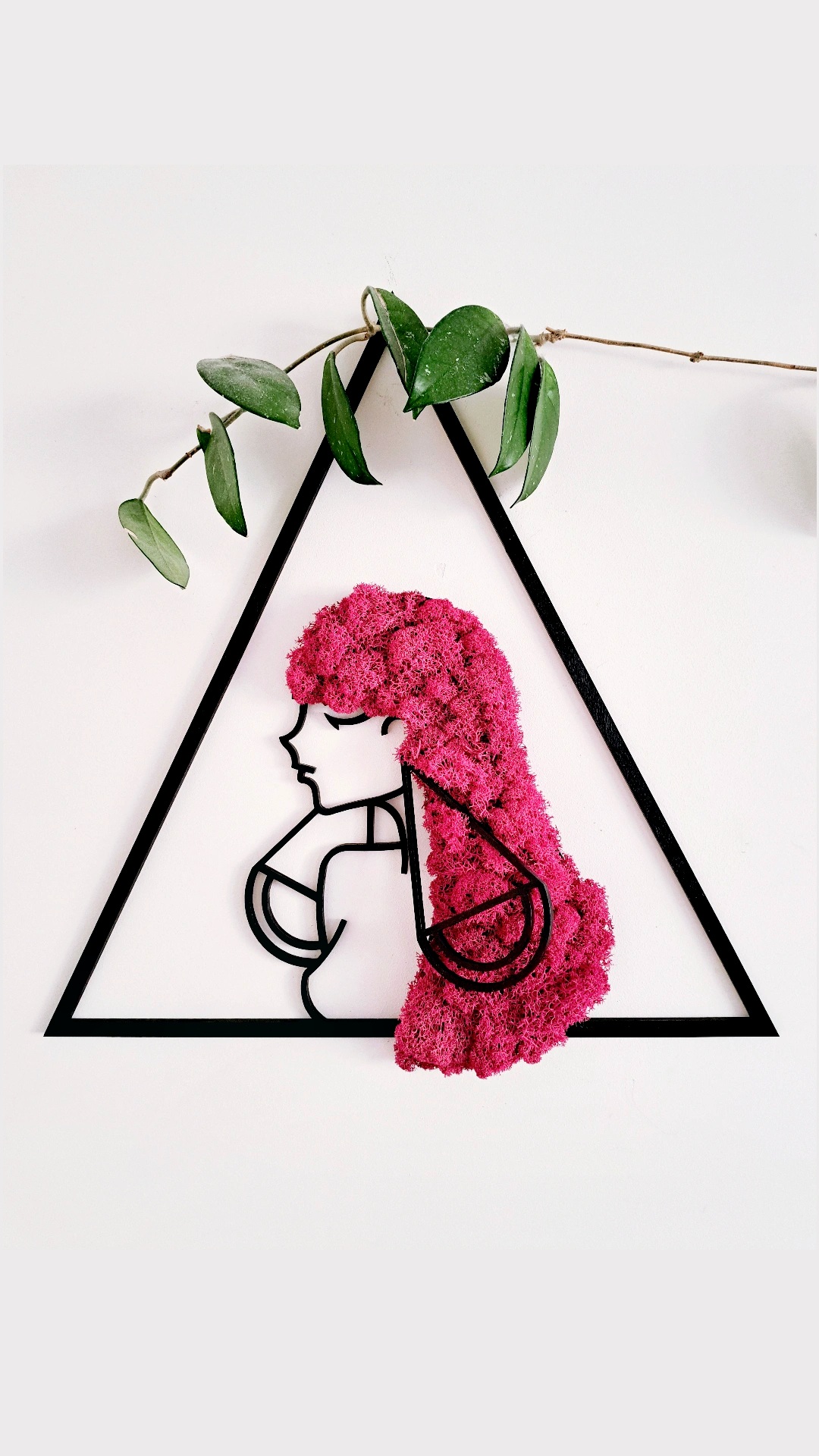 Wprowadź do swojego wnętrza wyjątkowy balans między naturą a sztuką dzięki tej zmysłowej dekoracji z chrobotka reniferowego, inspirowanej astrologicznym znakiem Wagi. To ręcznie wykonana kompozycja ścienna, przedstawiająca kobiecą postać o intensywnie fuksjowych włosach z chrobotka reniferowego, które przyciągają wzrok i emanują wyrazistą energią. Jej kolczyki – delikatne szale wagi – symbolizują poszukiwanie równowagi, sprawiedliwości i piękna w codziennym życiu.