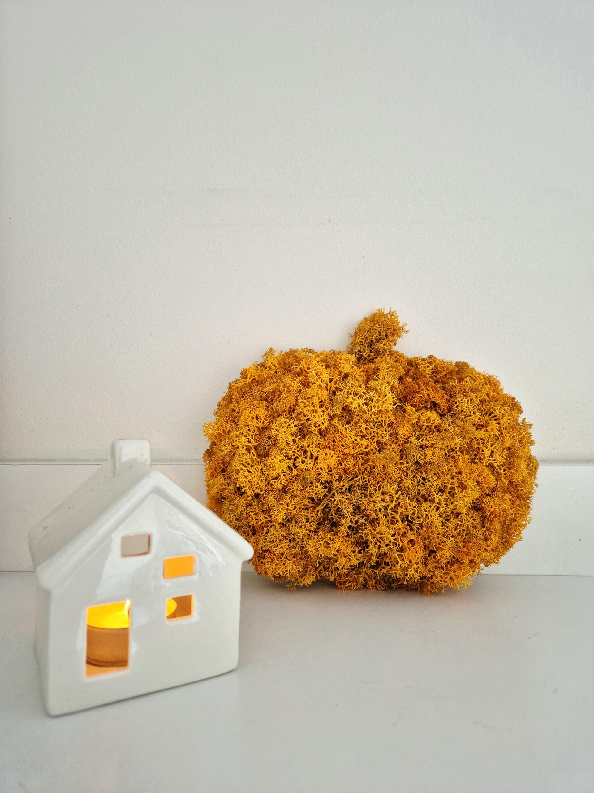 Pomarańczowa dynia z chrobotkiem reniferowym | 18 cm