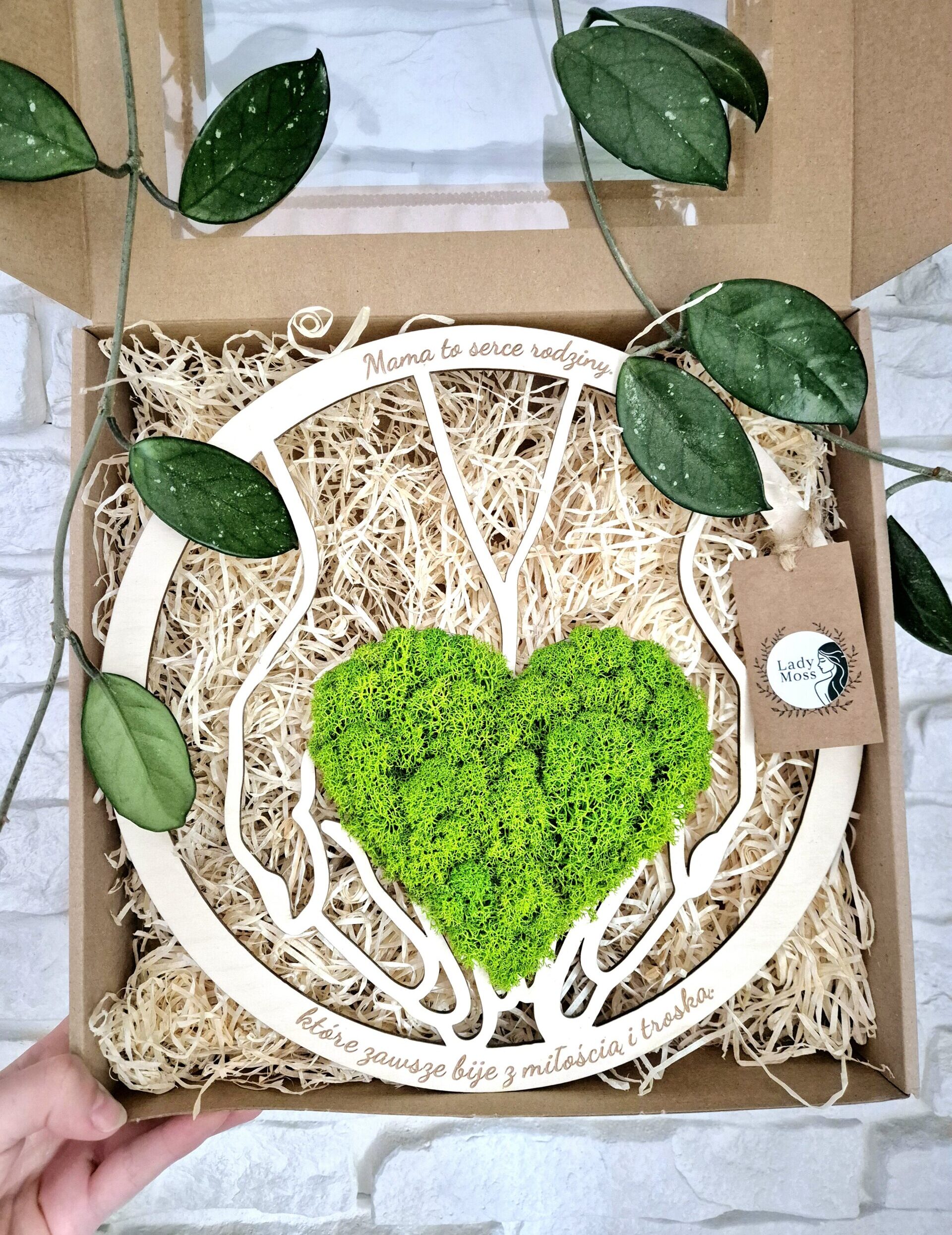 „Mama to serce rodziny” – dekoracja z chrobotka reniferowego z energią miłości i wdzięczności