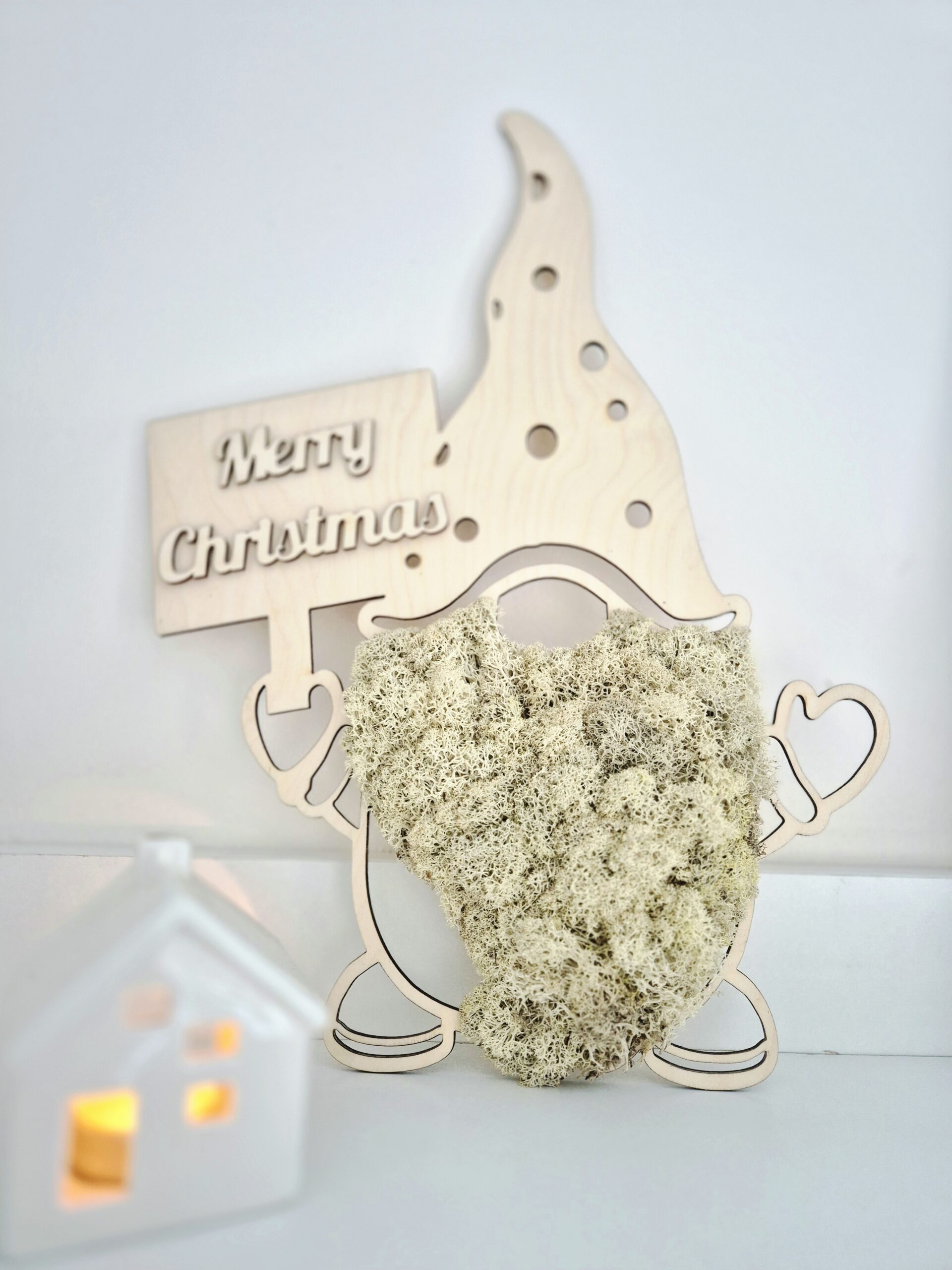 Wprowadź do swojego domu prawdziwie świąteczną atmosferę dzięki mojemu wyjątkowemu skrzatowi wykonanemu ze sklejki i chrobotka reniferowego. Jego miękka, puszysta broda stworzona z impregnowanego naturalnego chrobotka reniferowego w kolorze beżowym/naturalnym nadaje dekoracji ciepły i rustykalny charakter. Broda może zostać wykonana również w innym kolorze – wystarczy, że wybierzesz opcję personalizacji!